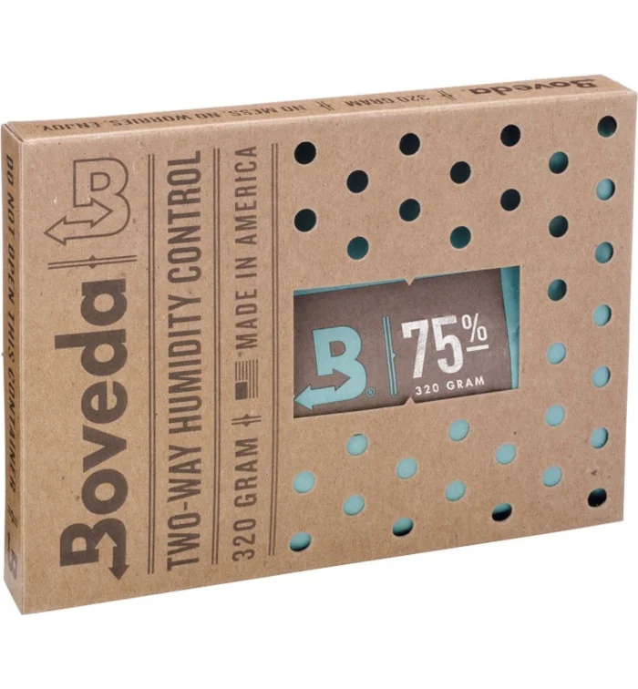 2-drożny nawilżacz Boveda, dostępny w 320-gramowym opakowaniu o poziomie wilgotności 75%, jest przeznaczony do stosowania w większych humidorach lub pudełkach do przechowywania. To opakowanie jest zalecane dla maksymalnie 100 cygar, co czyni go idealnym do utrzymania optymalnych warunków wilgotności.