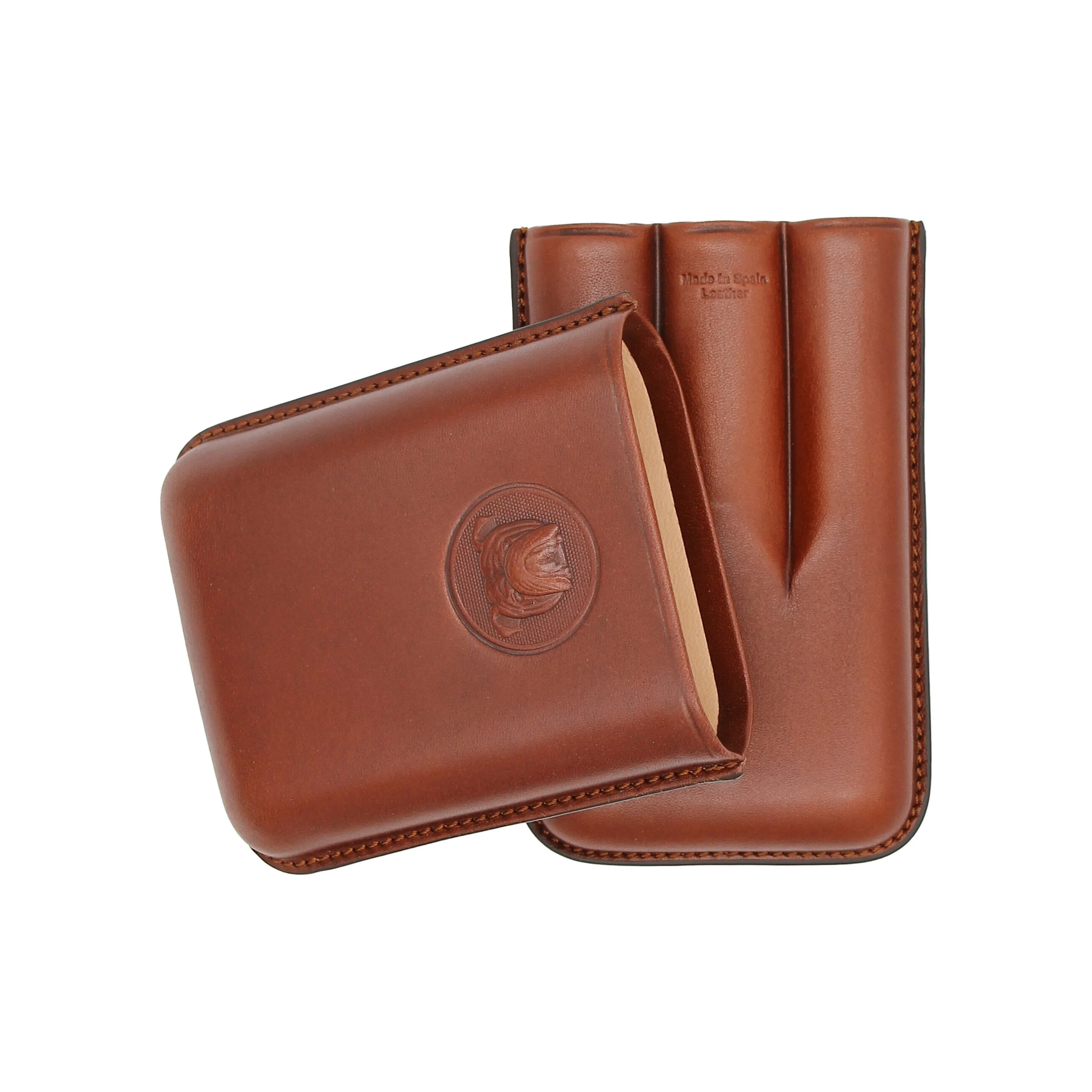 Wewnątrz etui znajduje się miejsce na trzy cygara o różnych rozmiarach. Praktyczne wycięcia zapewniają bezpieczne trzymanie podczas transportu. Wnętrze jest wyłożone miękką, jasną skórą, która zapewnia niezawodną ochronę cygar.