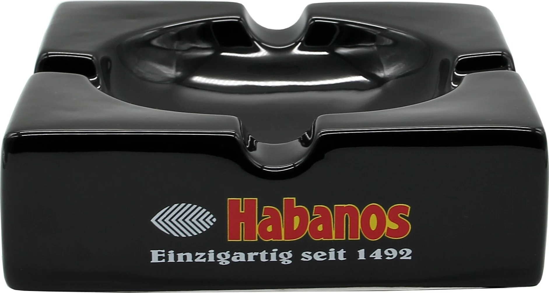 Ta kwadratowa porcelanowa popielniczka od Habanos zachwyca eleganckim czarnym wykończeniem i niemieckim napisem "Unique since 1492", który odnosi się do roku założenia Habanos i zdobi przód popielniczki. Idealnie nadaje się do delektowania się cygarami w towarzystwie, ponieważ posiada cztery duże podpórki na cygara.