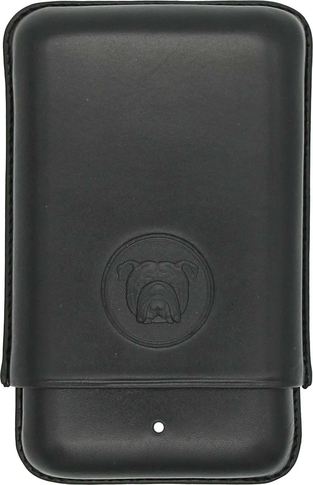 Etui na cygara Bulldog by Dunhill Robusto w kolorze czarnym łączy elegancję i solidność w wysokiej jakości akcesorium. Wykonane z prawdziwej skóry i wyprodukowane w Hiszpanii, zachwyca klasycznym kunsztem i efektownym designem.