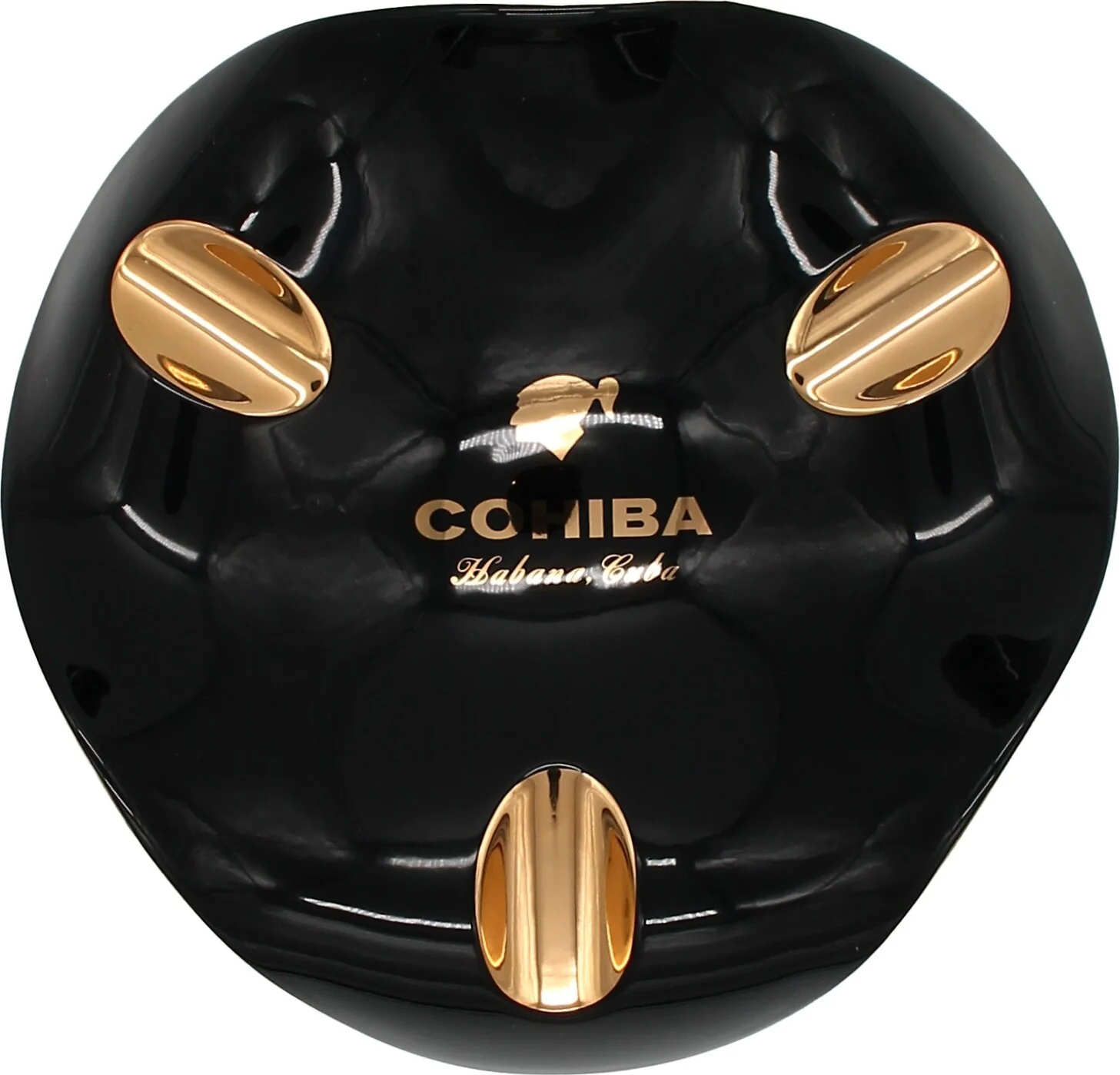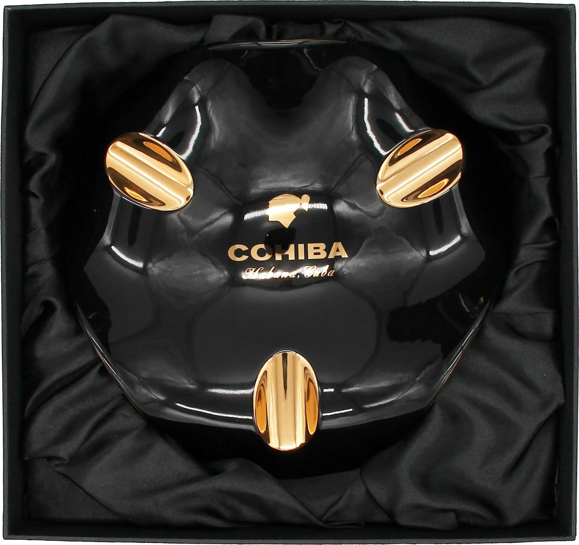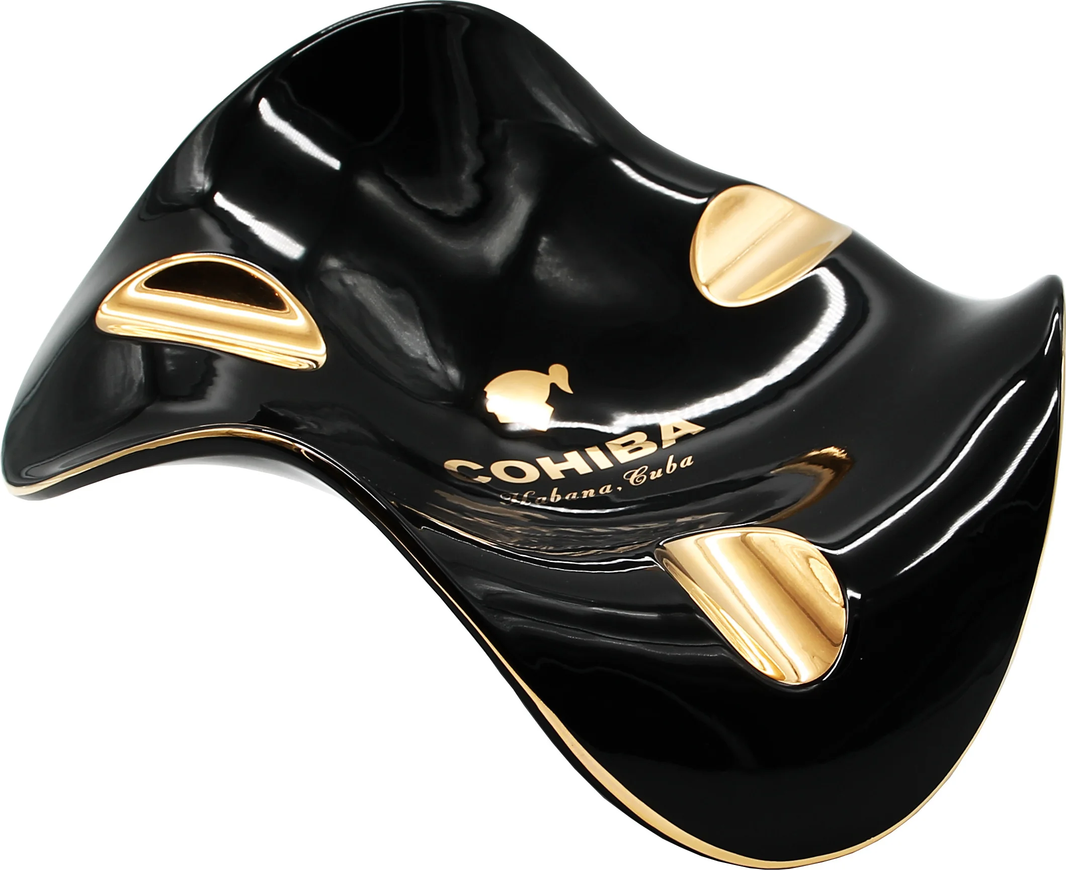 Popielniczka została zaprojektowana przez Nelsona Alfonso dla Habanos S.A. Złote logo Cohiba jest wyraźnie wyeksponowane na środku, podkreślając ekskluzywność i rozpoznawalność produktu. Połączenie czerni i złota oraz elegancki design sprawiają, że popielniczka ta jest wyrafinowanym i prestiżowym dodatkiem.
