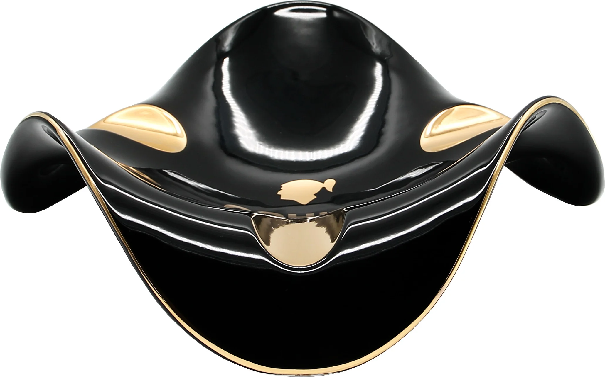- Elegancka czarna popielniczka na cygara ze złotymi akcentami