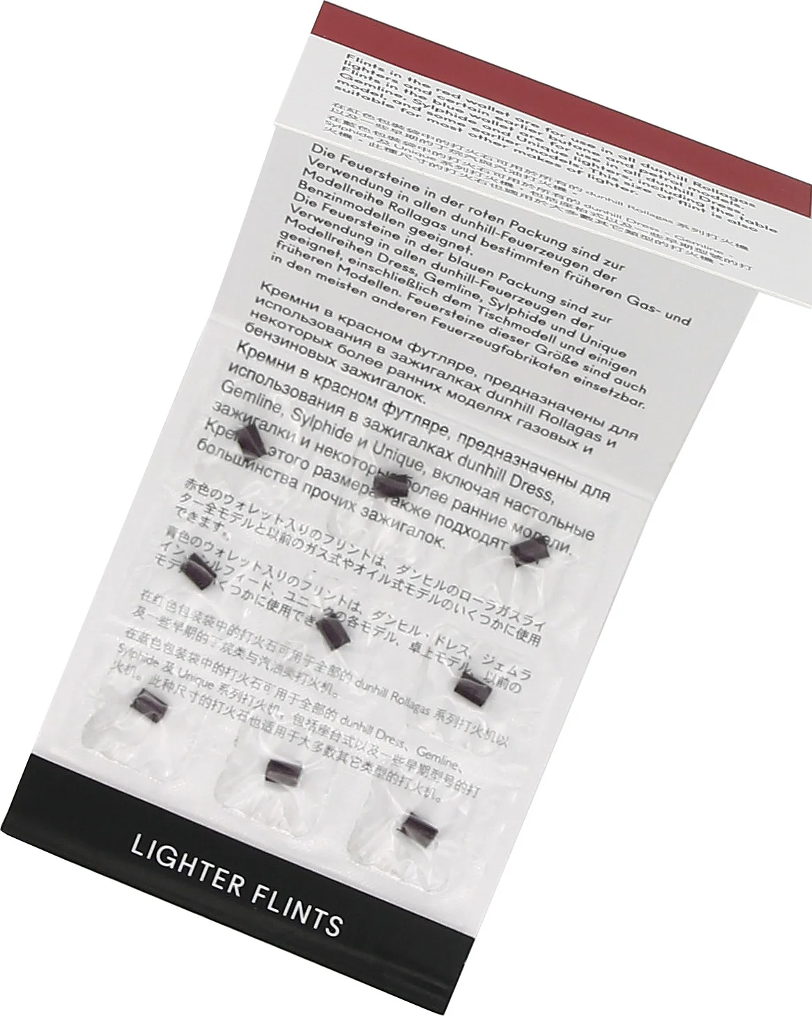 Krzemienie Dunhill w rozmiarze B (czerwone) zostały specjalnie zaprojektowane do zapalniczek Dunhill z linii "Rollagas". Jedno opakowanie zawiera 9 wysokiej jakości krzesiw, które zapewniają niezawodny zapłon i długą żywotność Twojej zapalniczki Dunhill.