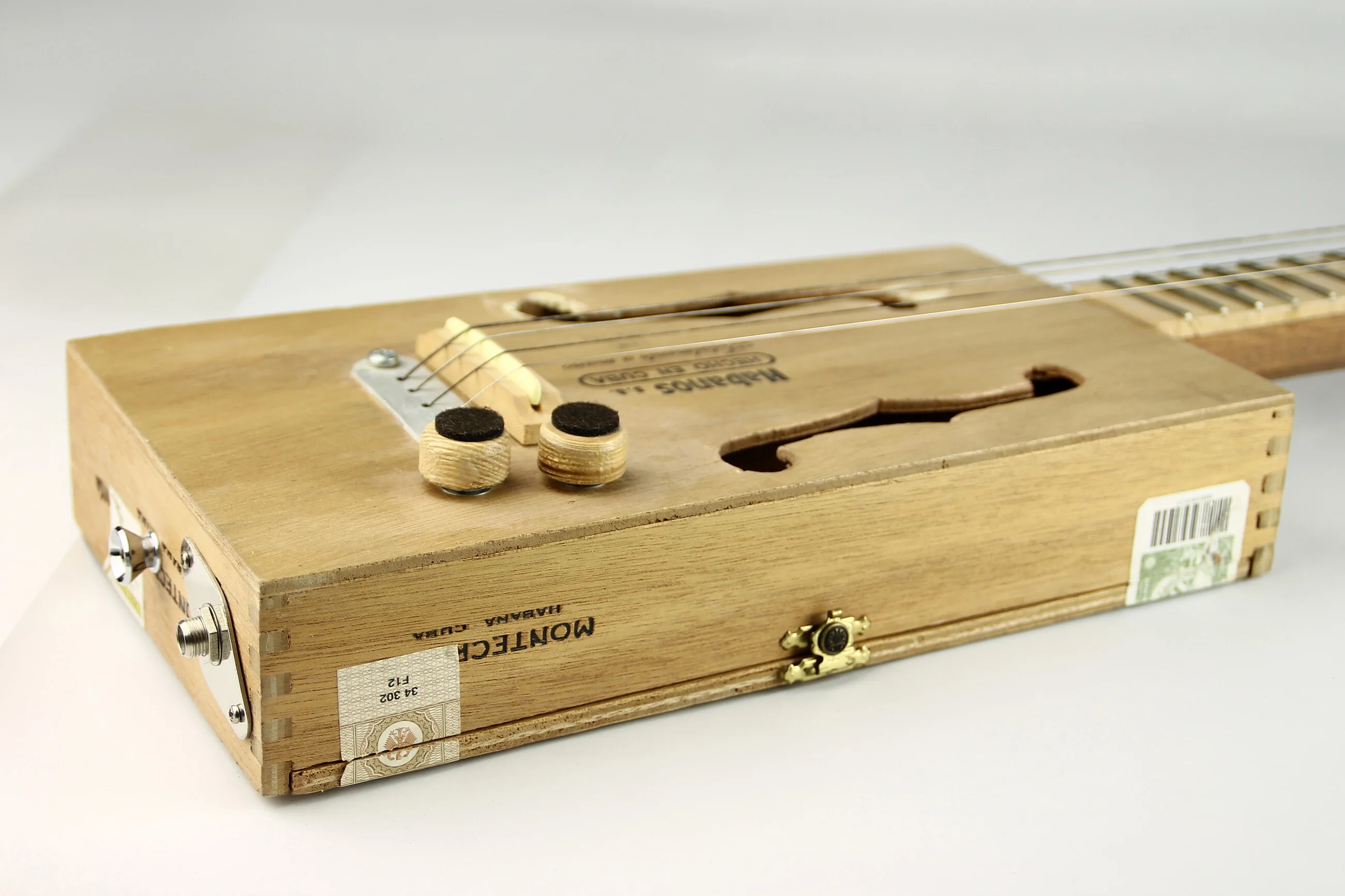 - Unikalny design: Ta gitara została wykonana z pudełka po cygarach Montecristo Edmundo, nadając jej wyraźny charakter. Nie tylko przyciąga wzrok, ale jest również w pełni grywalna.