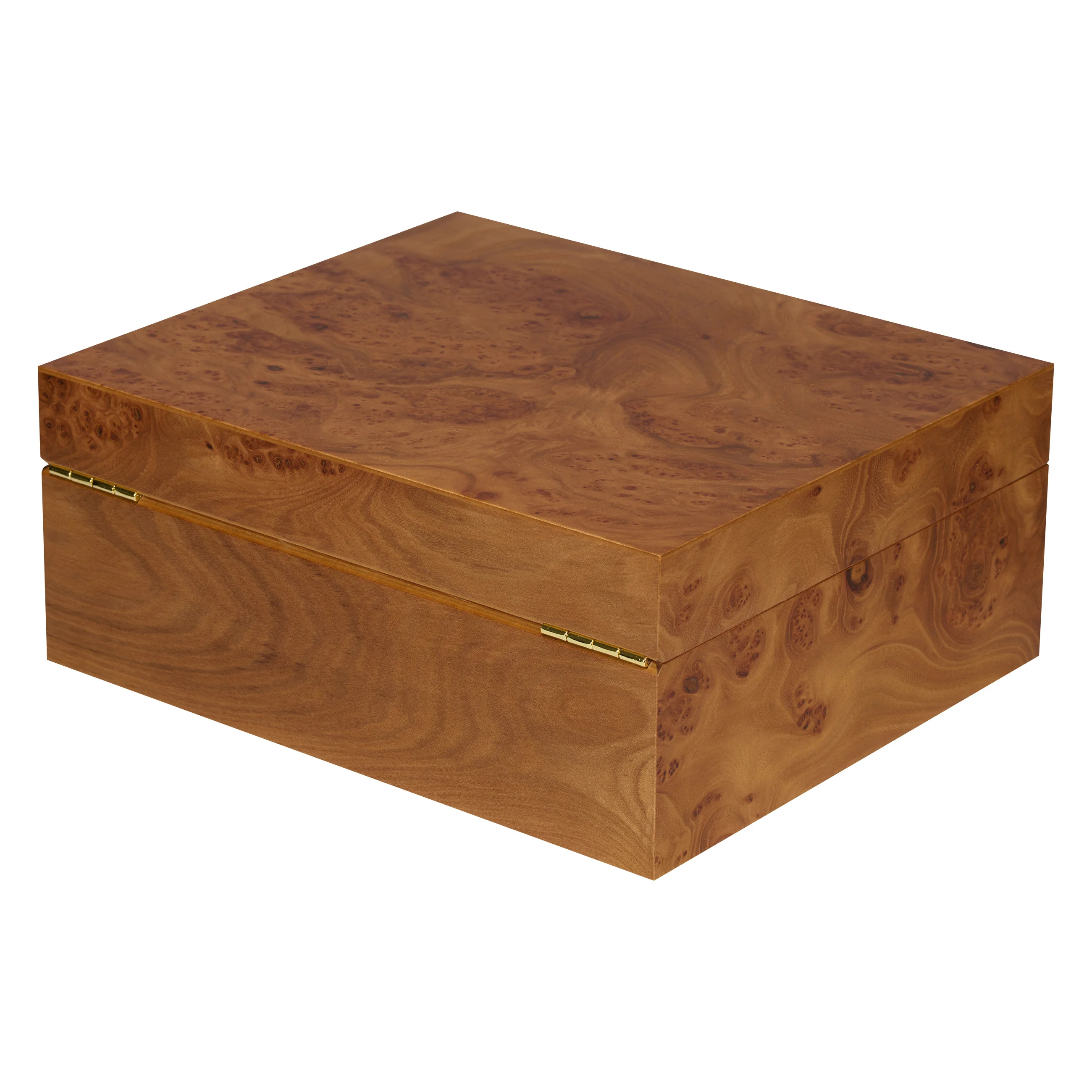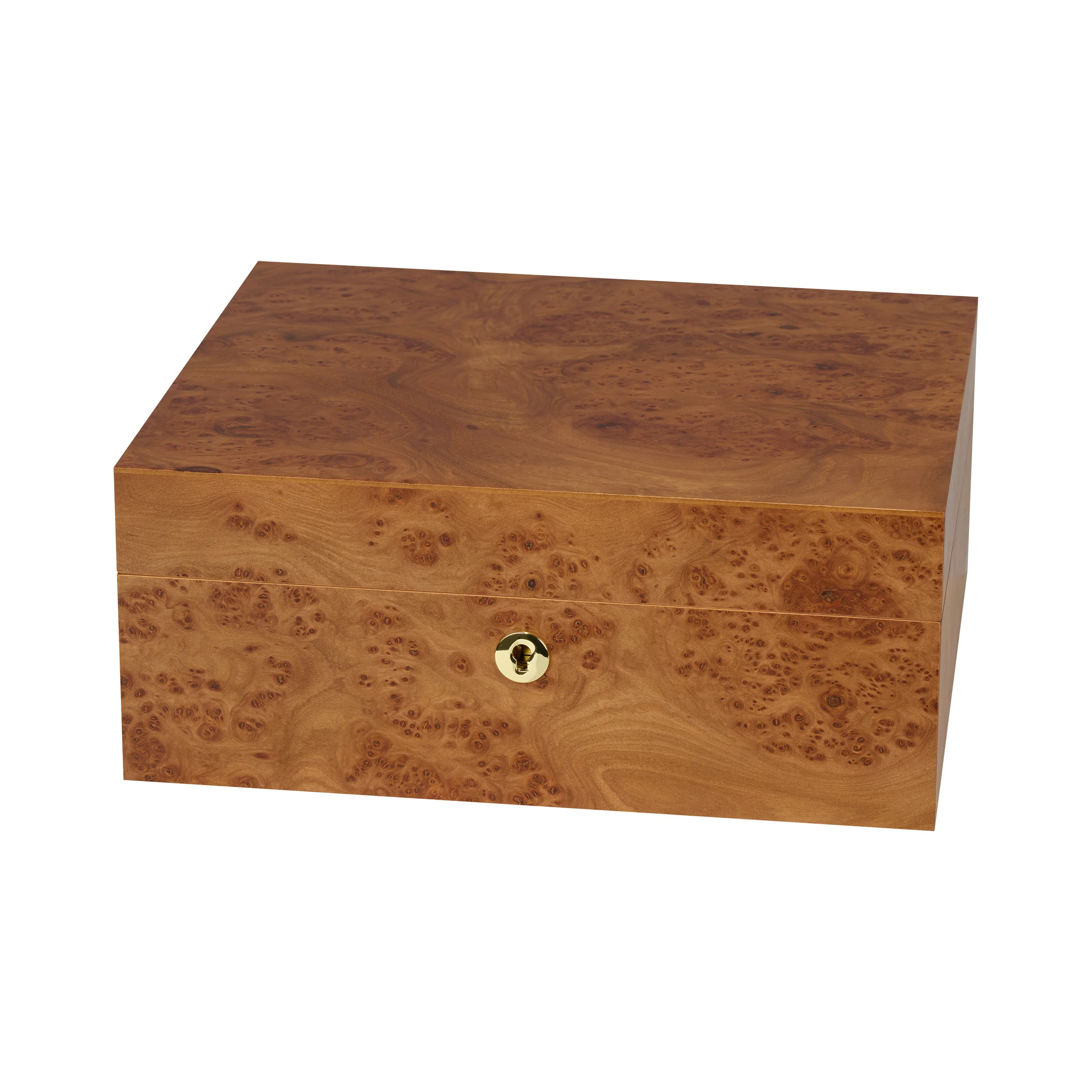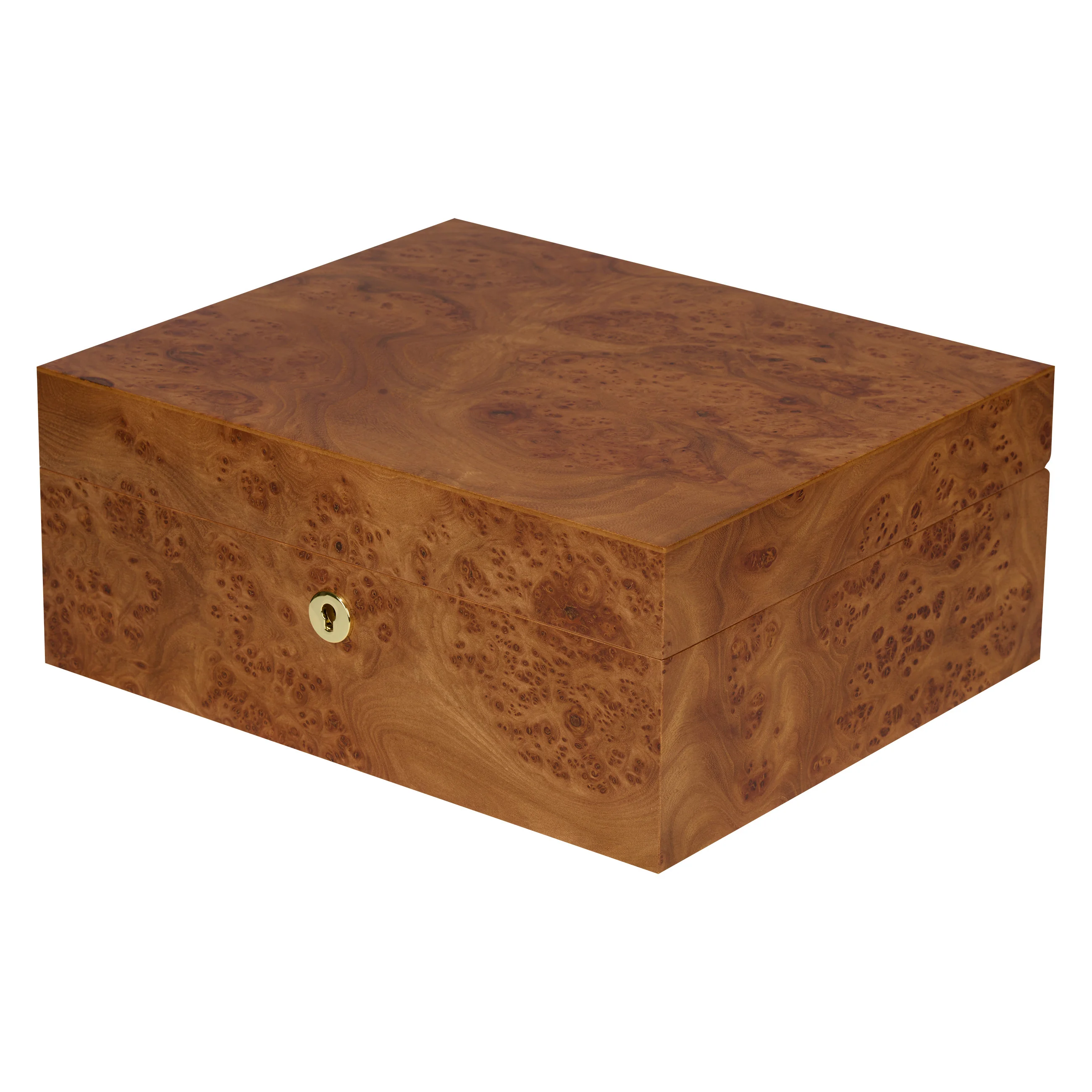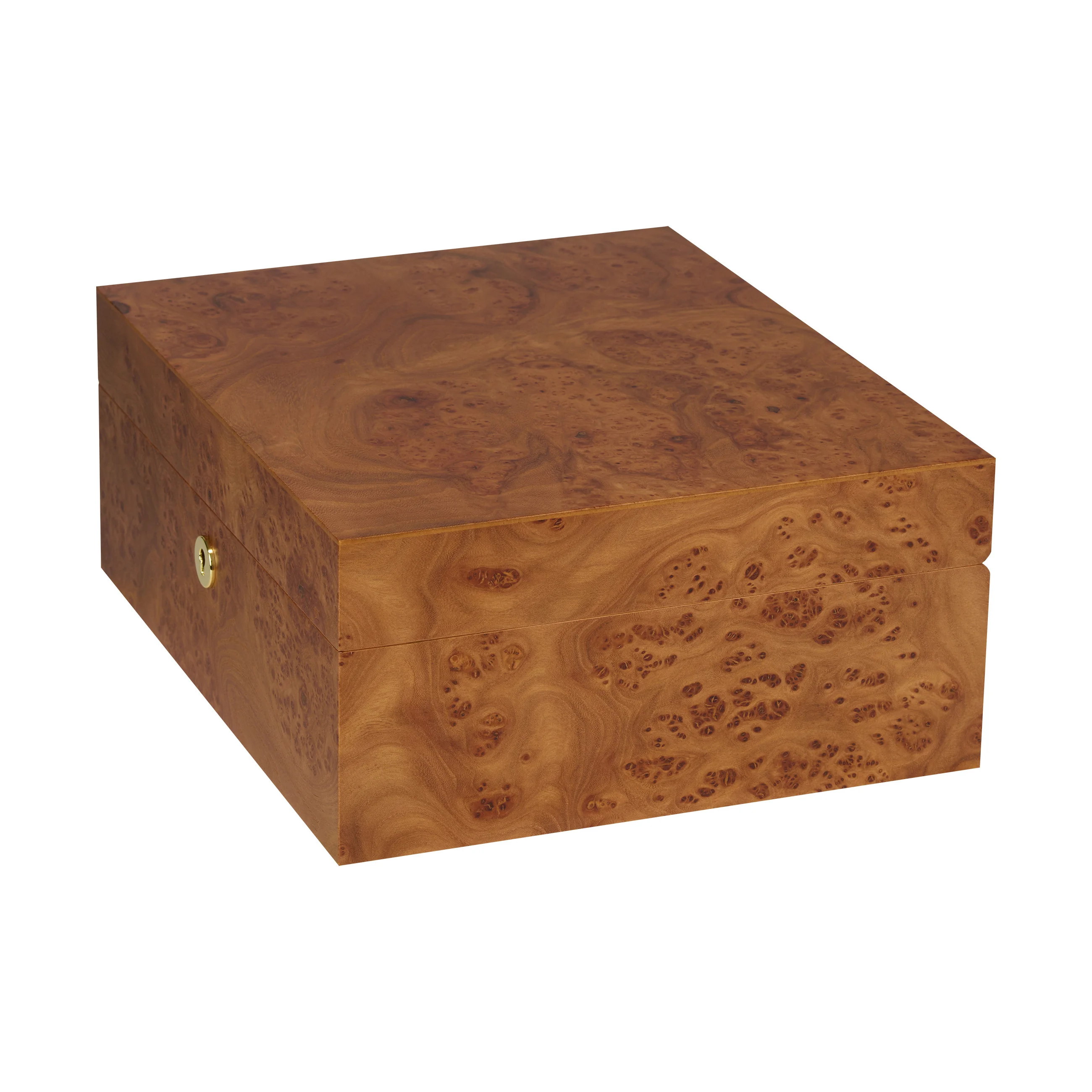 Drewno wiązowe zachwyca charakterystycznymi słojami w ciepłych i ciemnych odcieniach brązu, przeplatanymi efektownymi sękami, znanymi również jako „oczka”. Dzięki ciepłemu i naturalnemu wyglądowi humidor harmonijnie komponuje się z niemal każdym otoczeniem. Humidory średniej wielkości mieszczą do 75 cygar, zapewniając wystarczającą ilość miejsca na twoją kolekcję cygar.