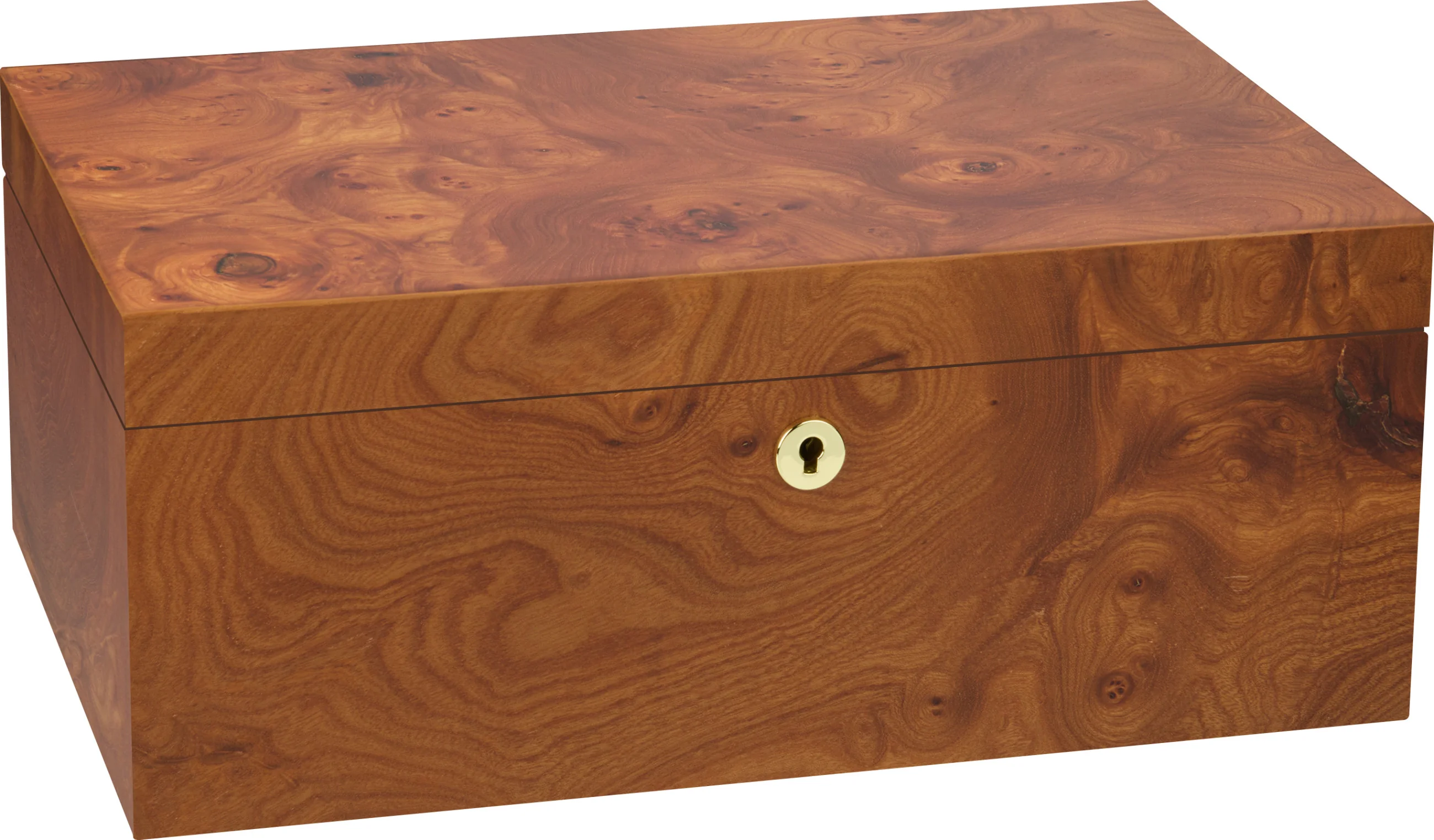 Model Elm zachwyca ciepłym brązowym odcieniem z wyraźnie widocznym usłojeniem, tworząc wyjątkowo elegancki wygląd. Humidory Grande mieszczą do 150 cygar, oferując dużo miejsca na kolekcję wymagających koneserów.
