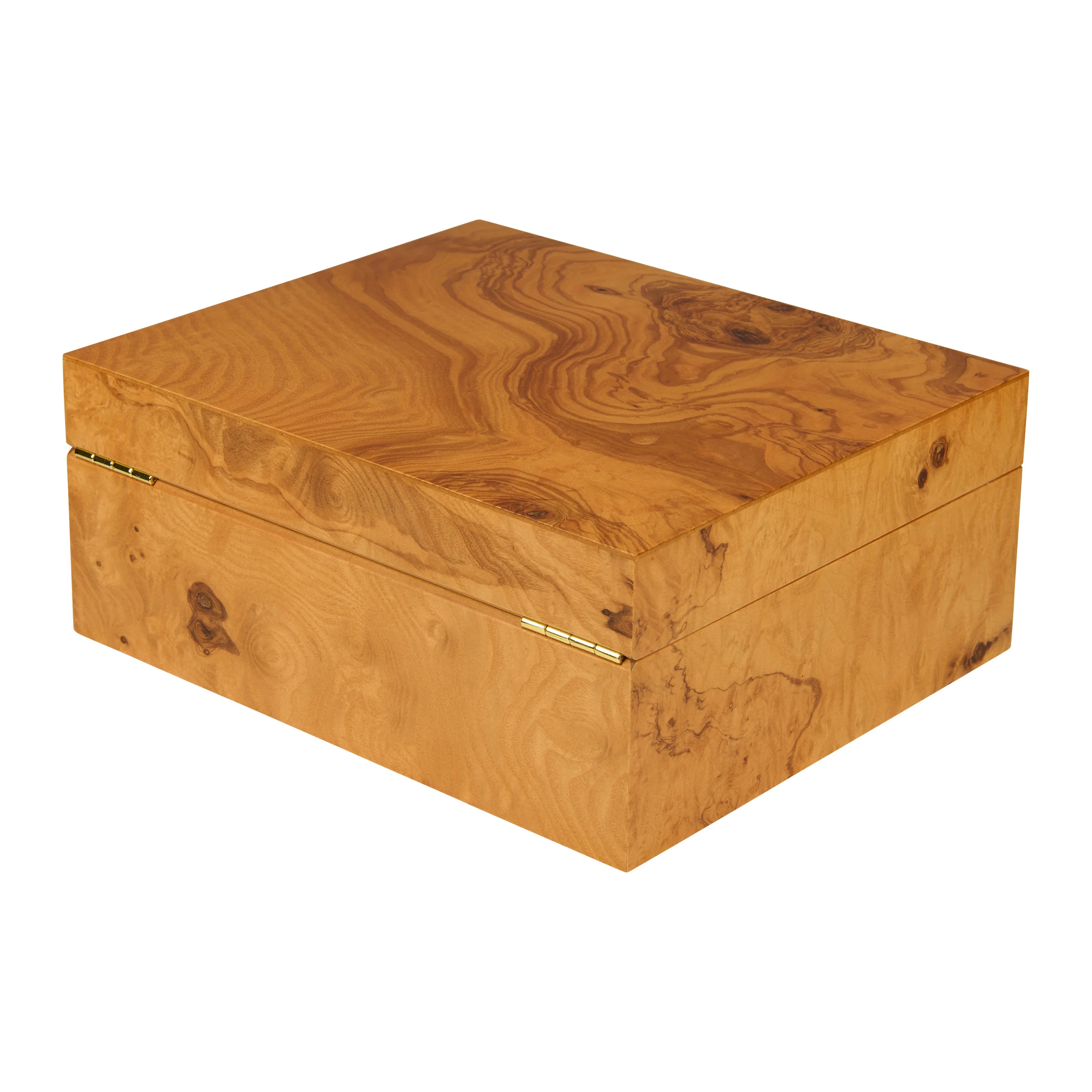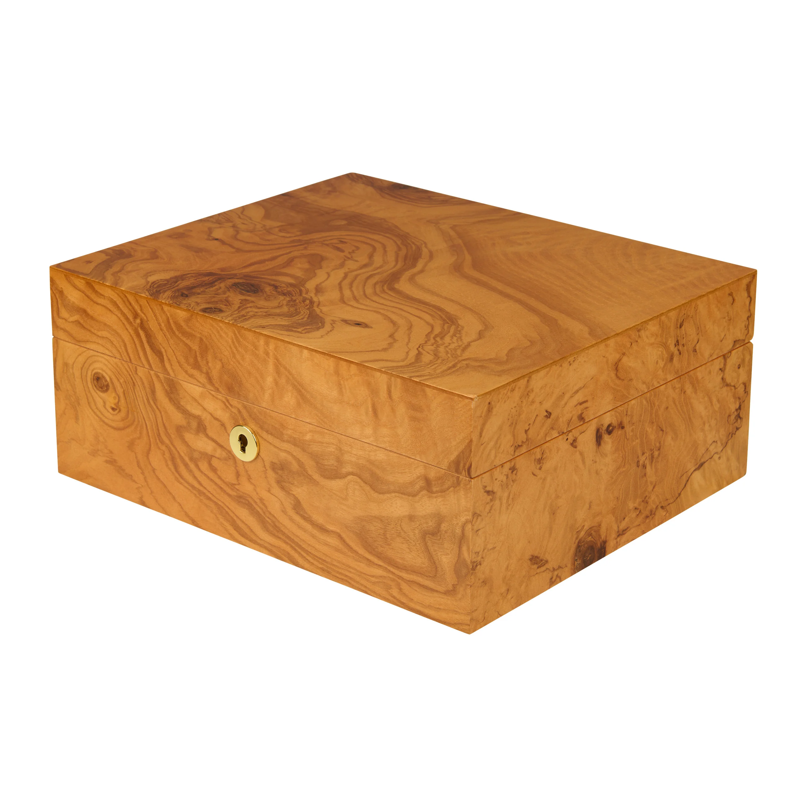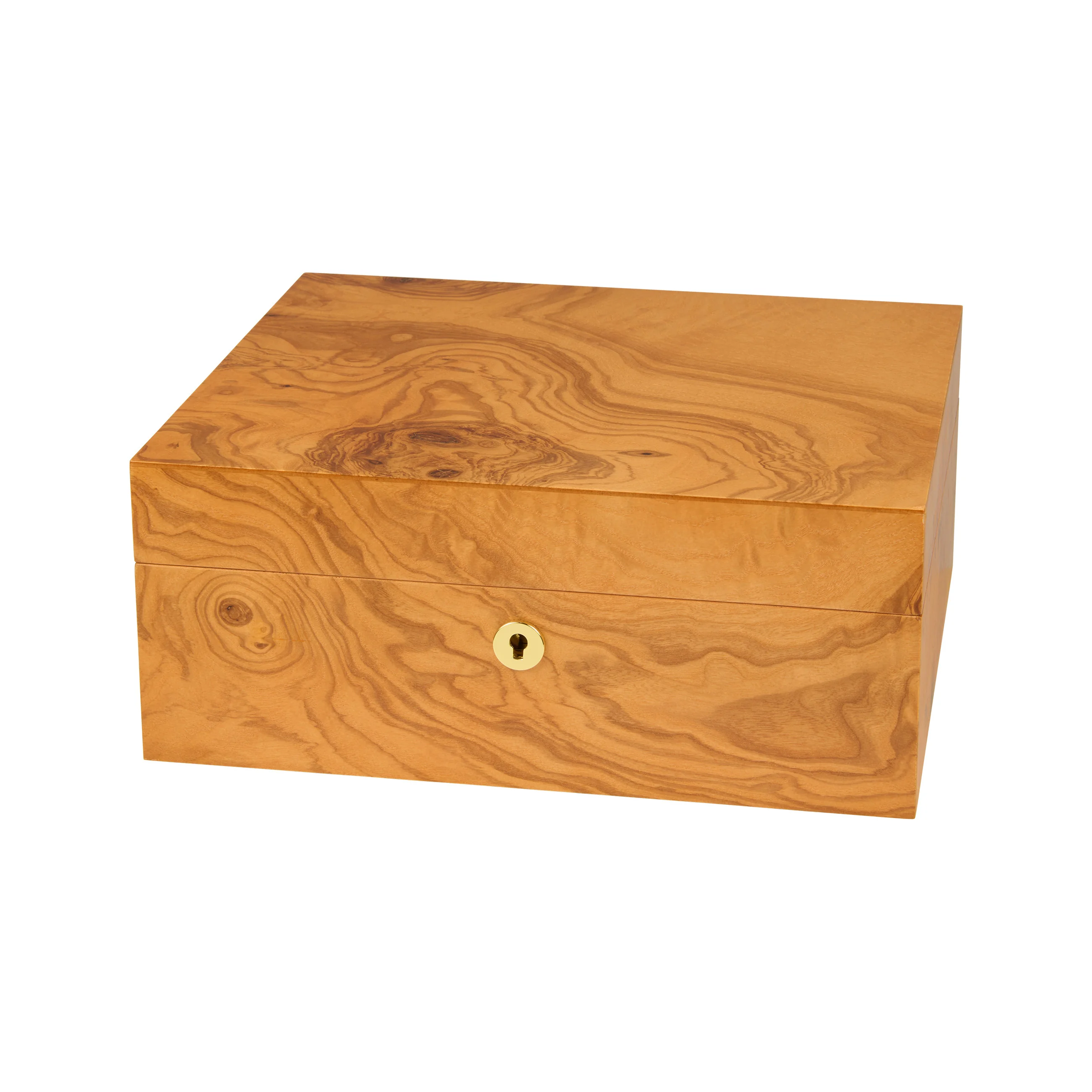 Drewno oliwne zachwyca charakterystycznym usłojeniem w odcieniach od miodowo-żółtego do złocistobrązowego, przeplatanym ciemnymi, niemal czekoladowymi żyłkami. Dzięki ciepłemu wyglądowi humidor harmonijnie komponuje się z niemal każdym otoczeniem. Humidory średniej wielkości mieszczą do 75 cygar, zapewniając wystarczającą ilość miejsca na twoją kolekcję cygar.