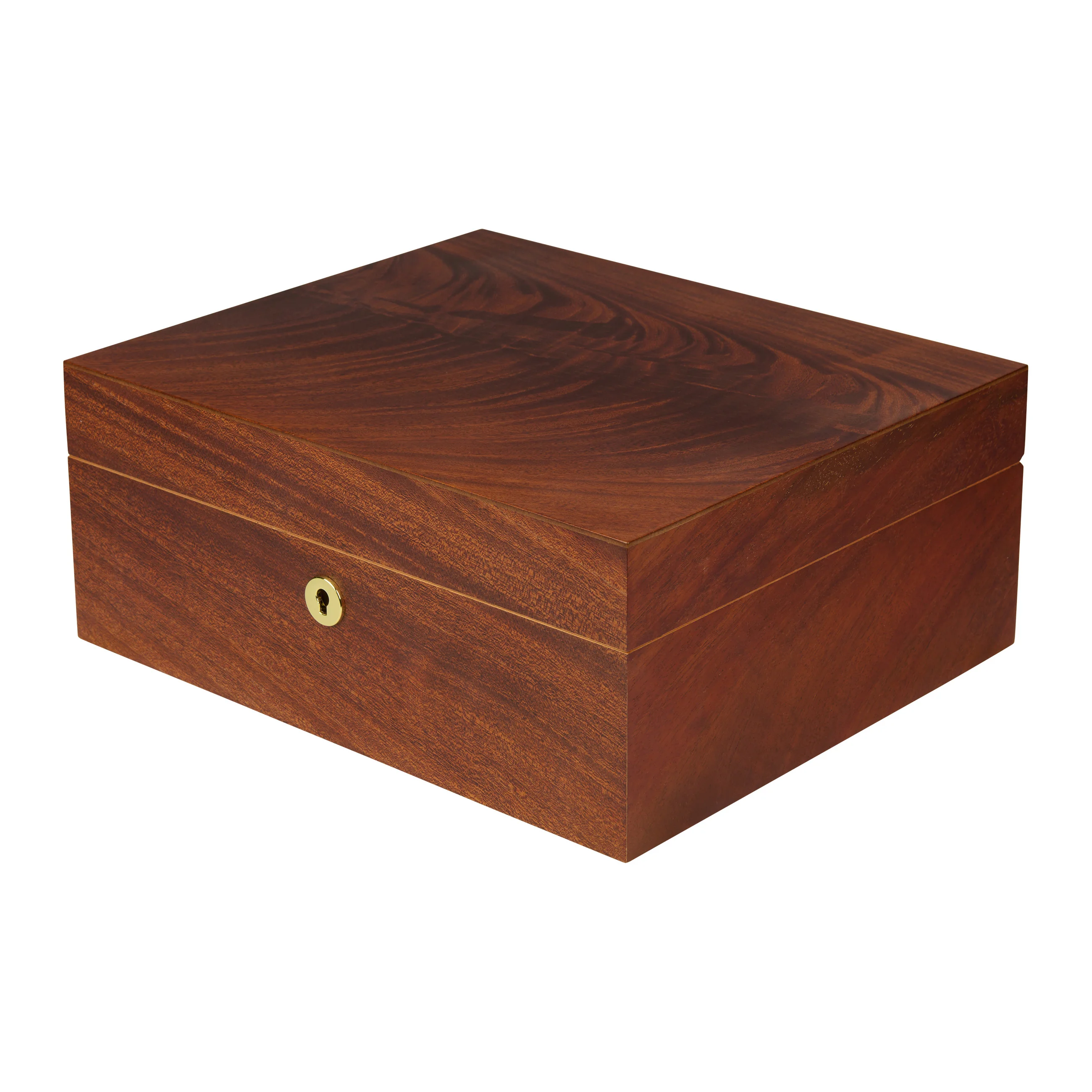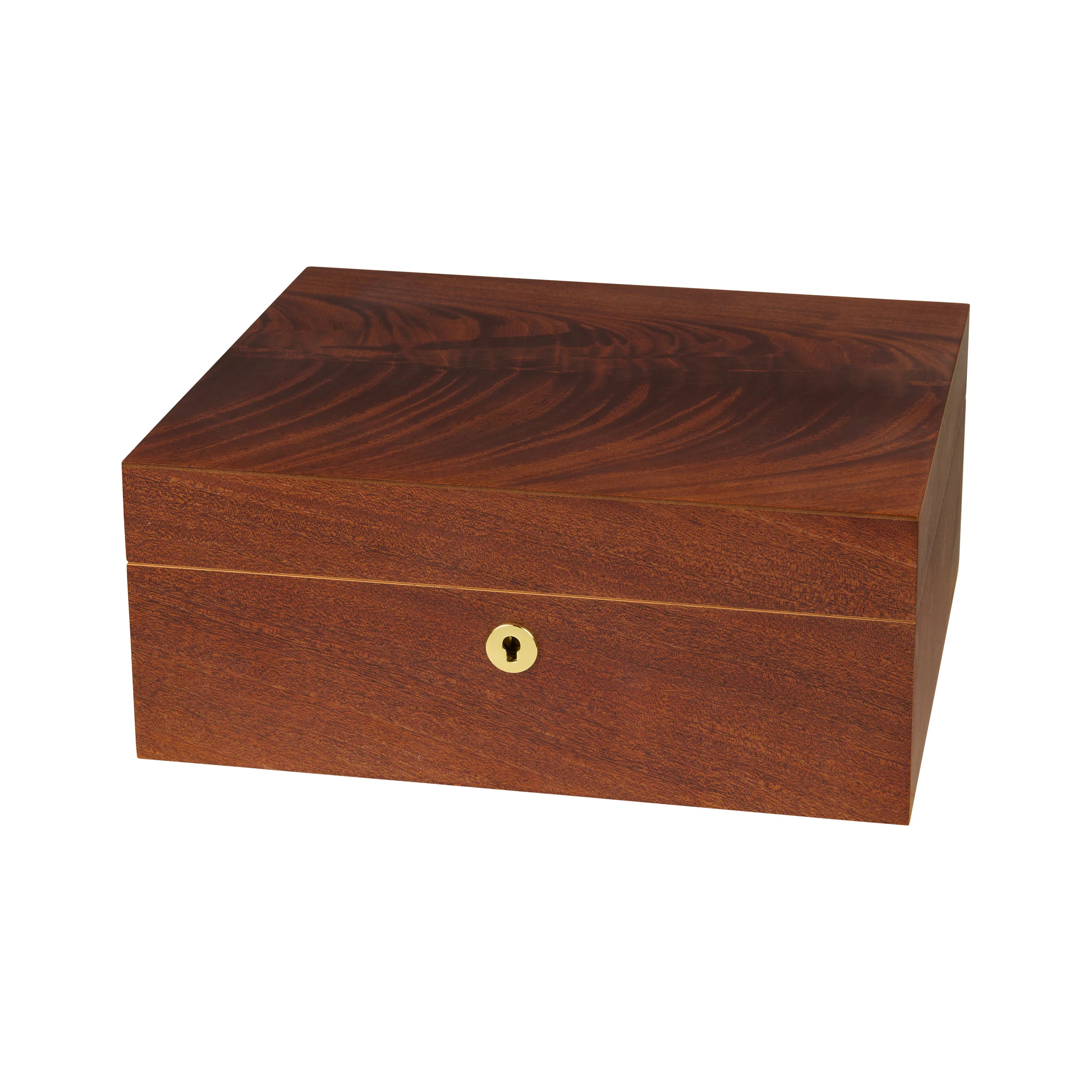 Drewno mahoniowe zachwyca charakterystycznym usłojeniem w odcieniach od czerwono-brązowego do ciemnobrązowego, przeplatanym efektownymi, płynnymi wzorami słojów, które nadają pokrywie wyjątkową głębię i dynamizm. Dzięki ciepłemu wyglądowi humidor harmonijnie komponuje się z niemal każdym otoczeniem. Humidory średniej wielkości mieszczą do 75 cygar, zapewniając wystarczającą ilość miejsca na twoją kolekcję cygar.
