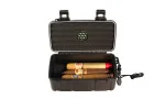 Ten czarny humidor podróżny wykonany z wytrzymałego, twardego plastiku został opracowany specjalnie z myślą o bezpiecznym transporcie twoich cygar. Idealny do przygód na świeżym powietrzu lub podróży, oferuje niezawodną ochronę do 10 cygar i imponuje solidnymi i funkcjonalnymi funkcjami.
