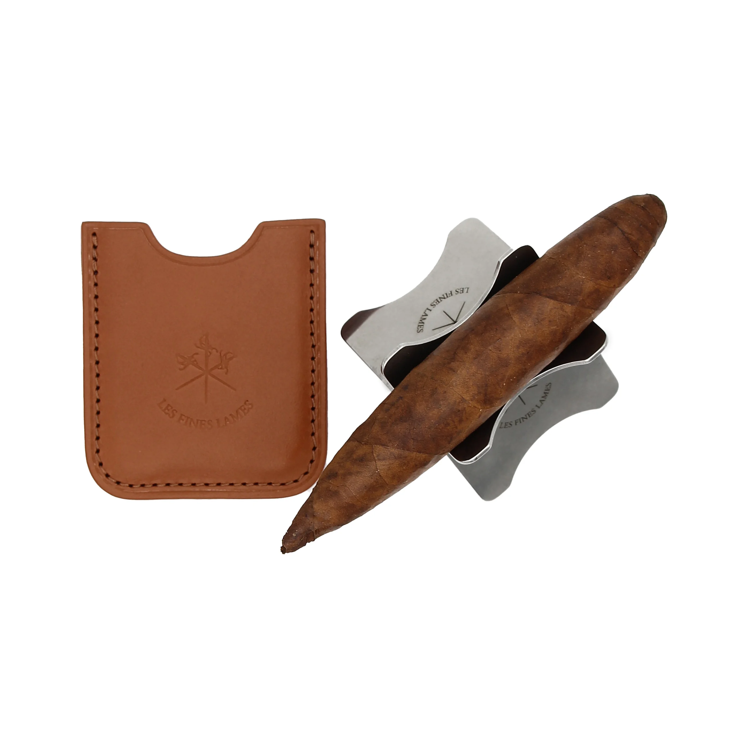 - Podstawka pod cygaro z etui z prawdziwej skóry w eleganckim brązowym odcieniu od francuskiej marki Les Fines Lames