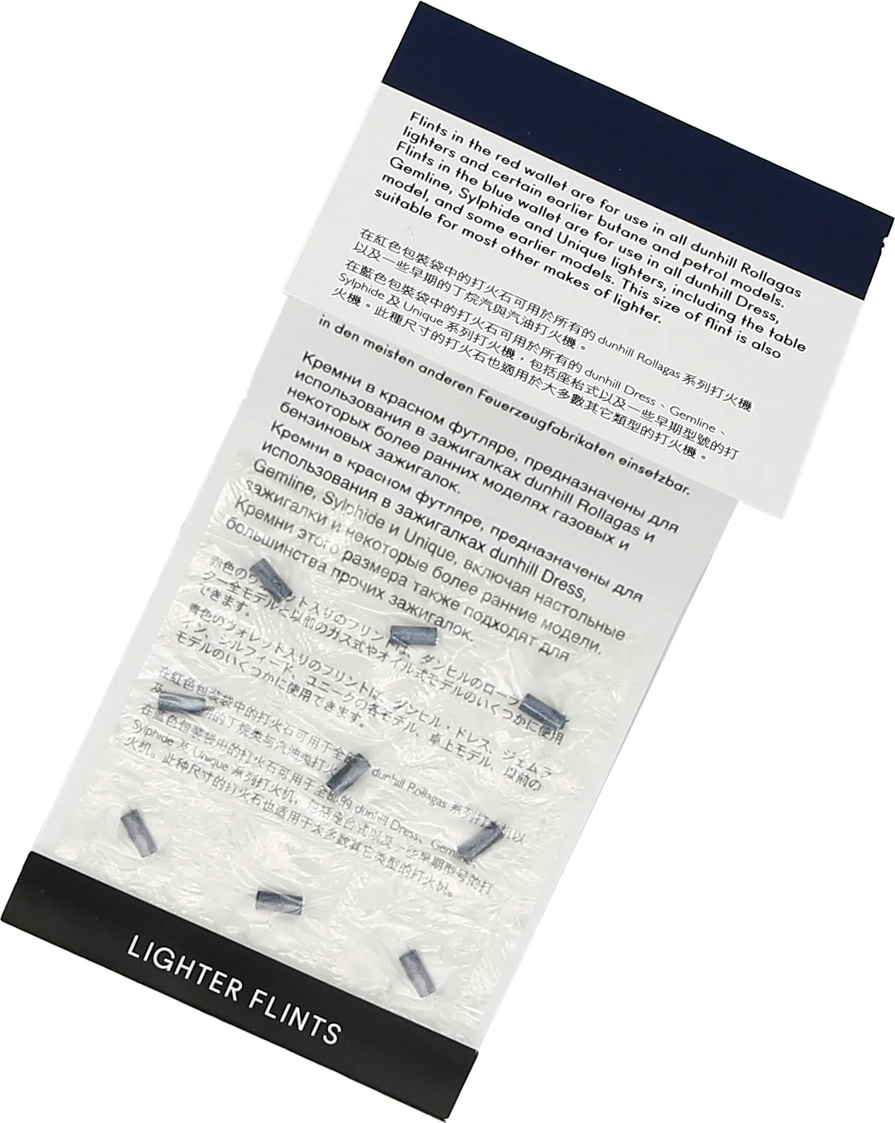 Krzemienie Dunhill w rozmiarze A (niebieskie) zostały specjalnie zaprojektowane do zapalniczek Dunhill z linii "Unique". Jedno opakowanie zawiera 9 wysokiej jakości krzesiw, które zapewniają niezawodny zapłon i długą żywotność Twojej zapalniczki Dunhill.