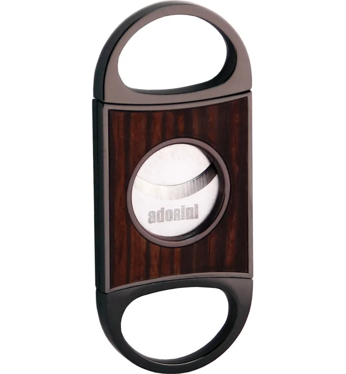 Ekskluzywny obcinacz do cygar z inkrustacją z prawdziwego drewna Elegancka obcinarka do cygar od adorini łączy w sobie błyszczący metal pistoletowy ze stylową wkładką z prawdziwego drewna hebanowego. Doskonała symbioza funkcjonalności i ekskluzywnego designu dla wymagających miłośników cygar.
