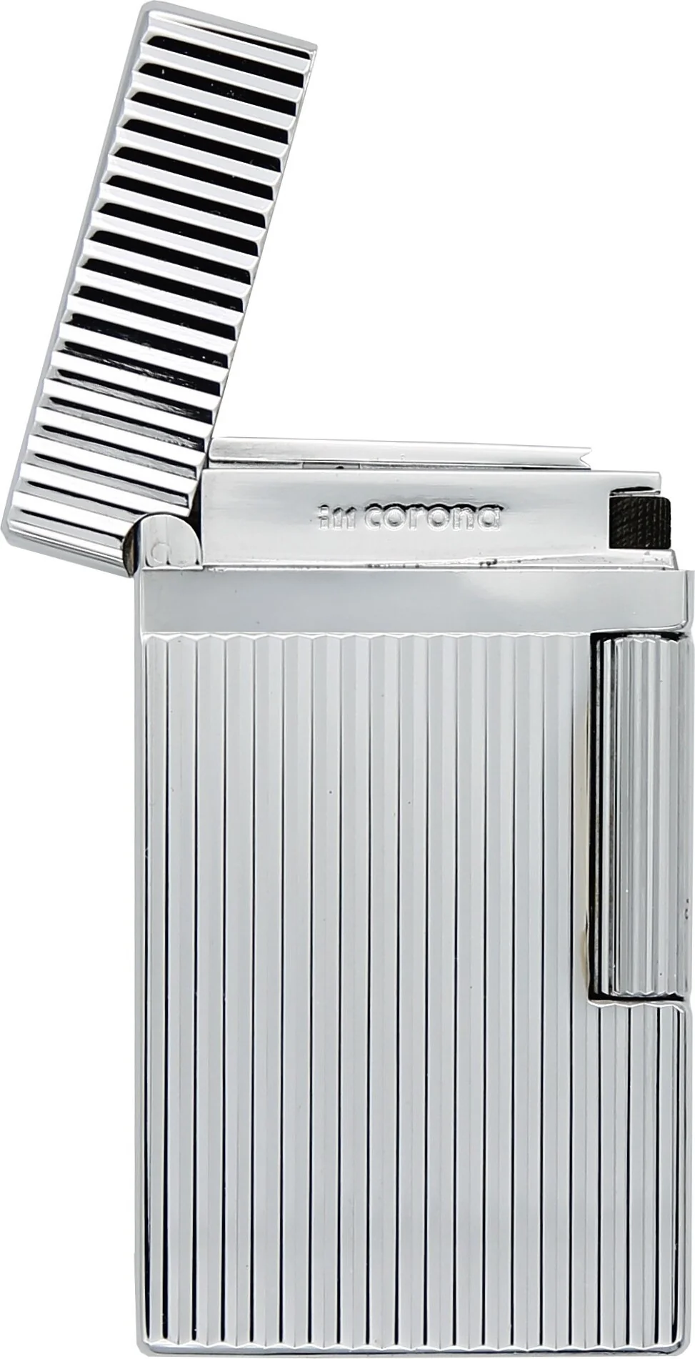 IM Corona Double Corona to elegancka zapalniczka w błyszczącym chromie, która łączy w sobie klasyczny design i nowoczesną elegancję.