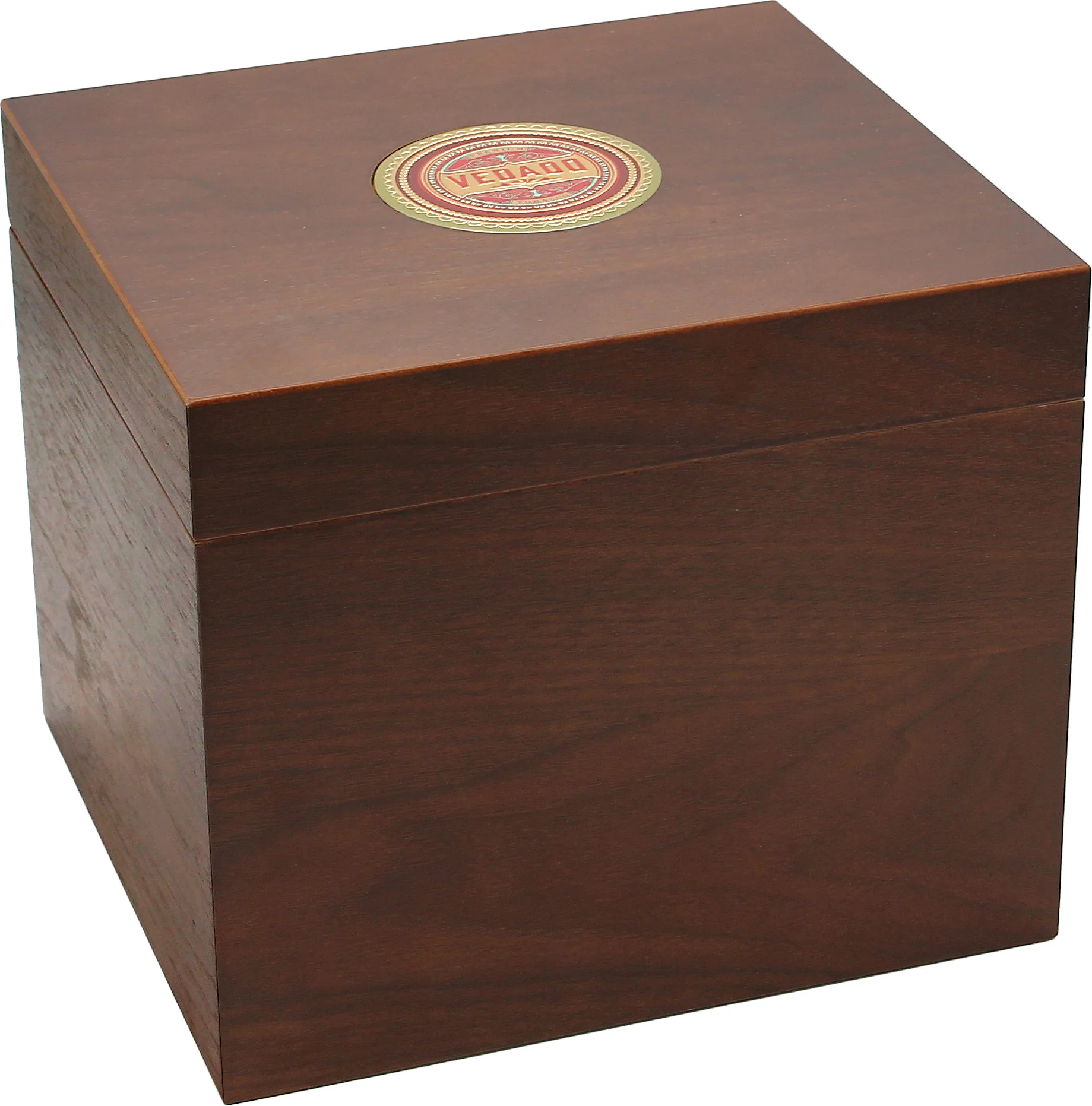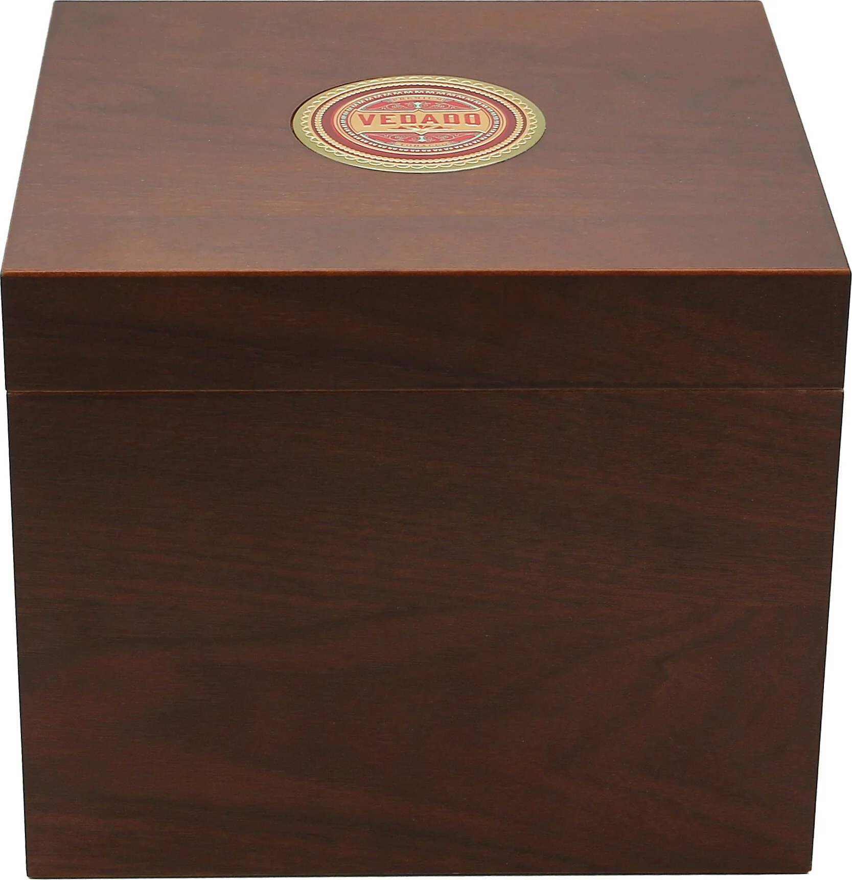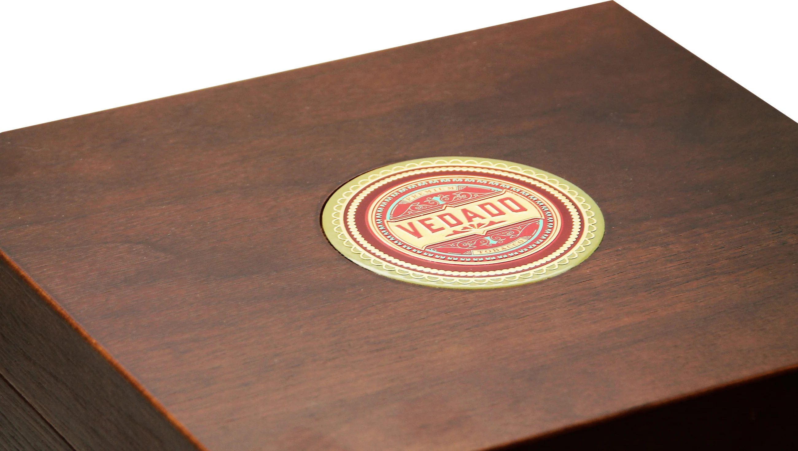 Humidor Vedado zachwyca eleganckim designem i wysoką jakością wykonania. Jego ciepłe brązowo-czerwone odcienie nadają mu klasycznej elegancji, a inkrustowana tabliczka Vedado na pokrywie, z wypukłą teksturą, zapewnia wyjątkowy detal.