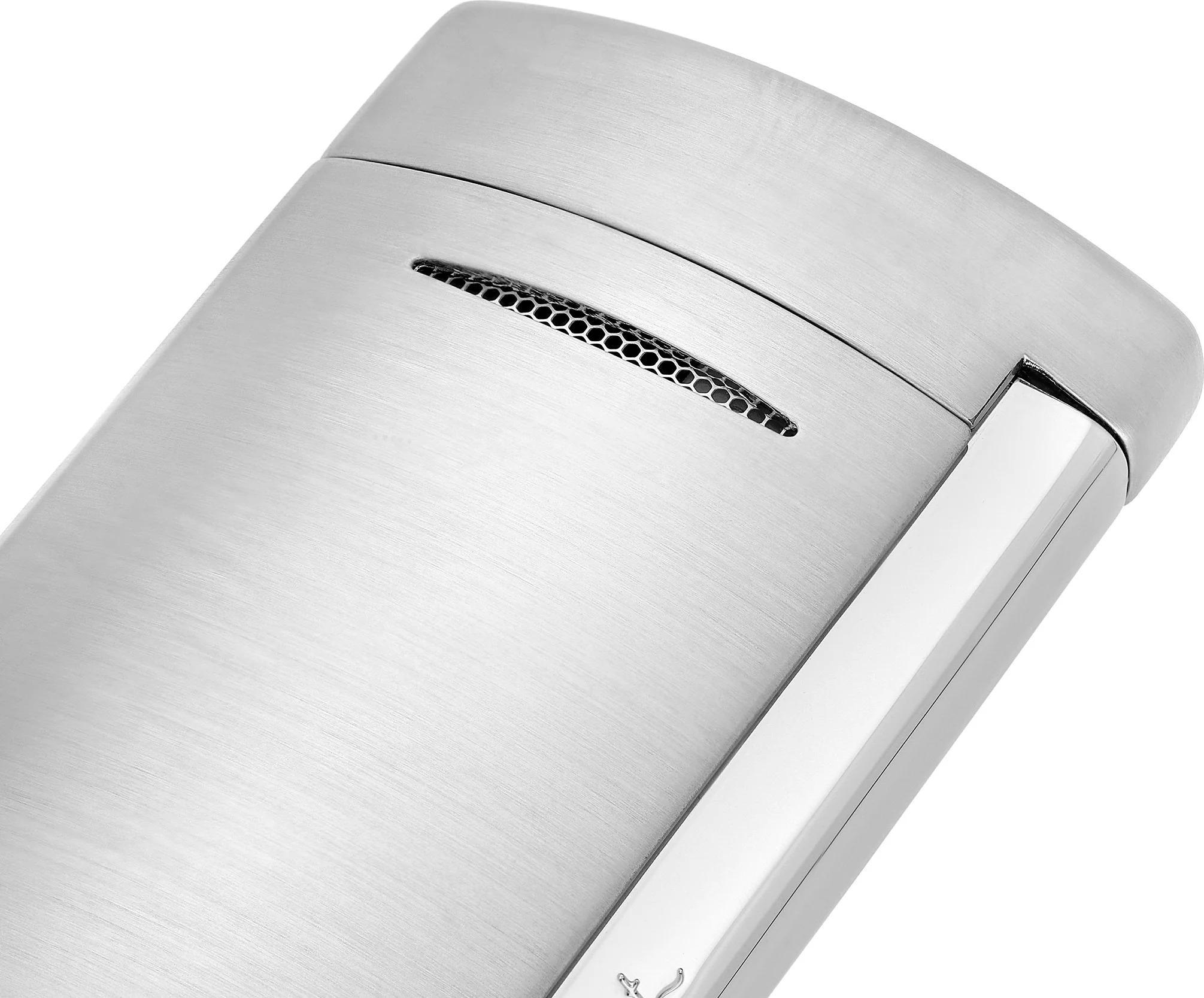 Zapalniczka S.T. Dupont Minijet w kolorze szczotkowanego chromu z błyszczącymi akcentami to wyrafinowana i poręczna zapalniczka, która zachwyca mocnym płomieniem i elektrycznym zapłonem piezoelektrycznym. Szczotkowane wykończenie z polerowanymi chromowanymi akcentami sprawia, że jest to stylowy dodatek do codziennego użytku.