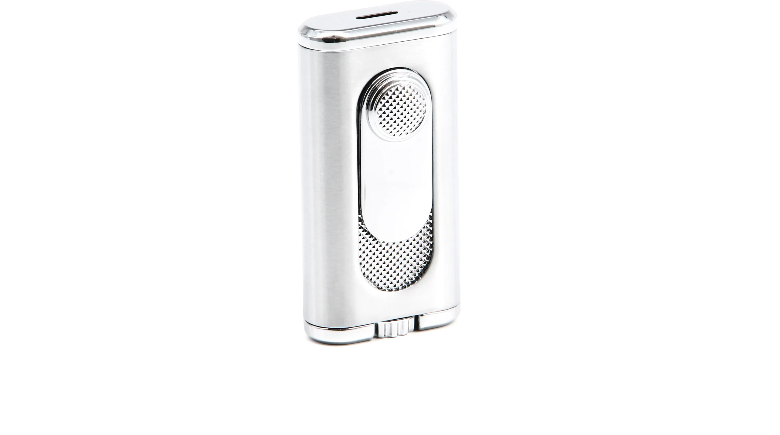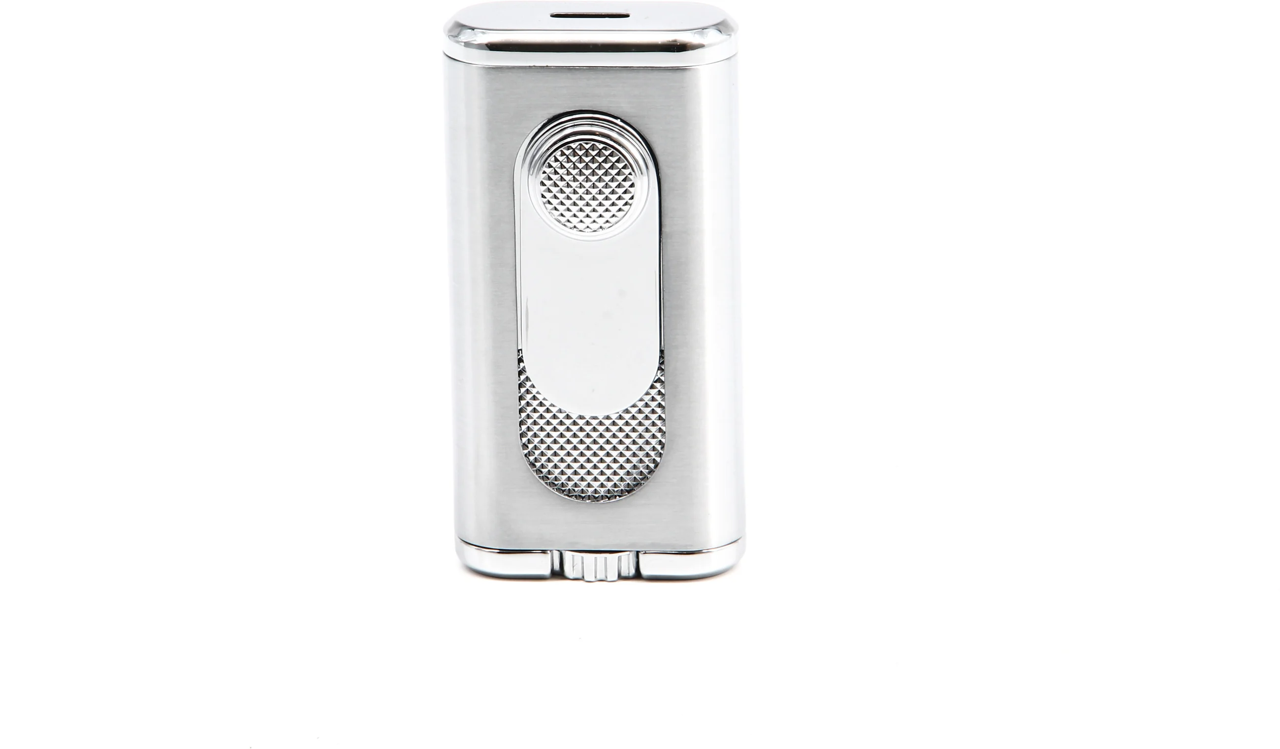 Atrakcyjna zapalniczka ma srebrno-chromowane wykończenie z teksturą w romby, które również zdobią wysuwany spust zapłonu. Ten wyrafinowany, nowoczesny wygląd sprawia, że Verano jest świetną opcją na spotkania, na których wszystkie oczy są skierowane na Ciebie.