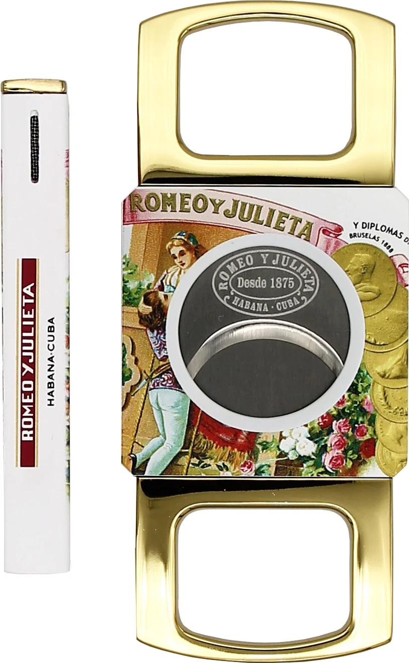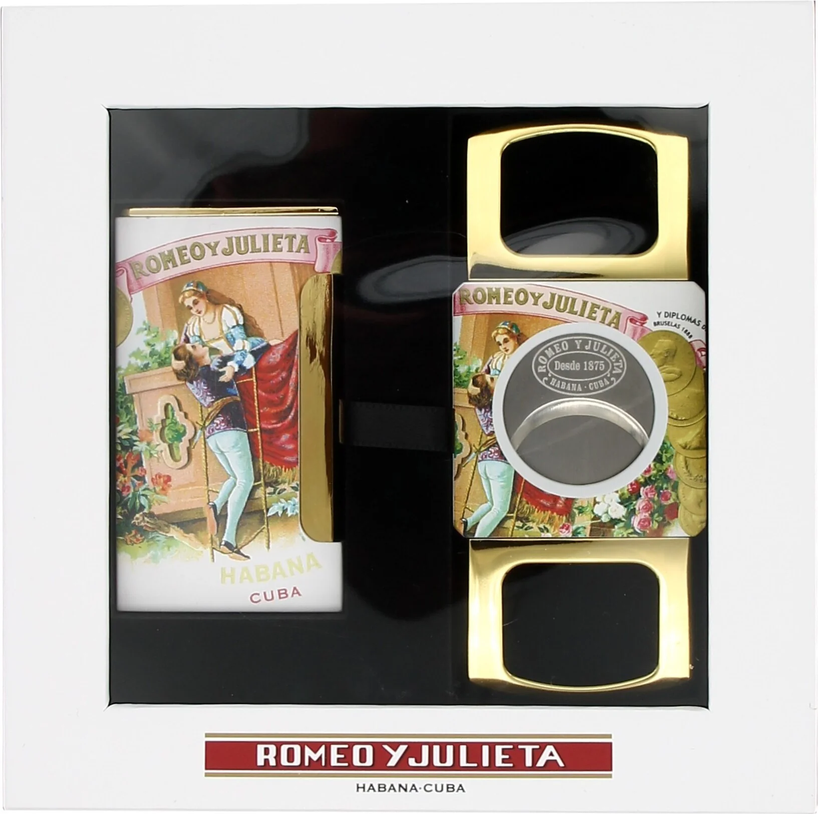 Zestaw zapalniczki i obcinarki do cygar Romeo y Julieta łączy w sobie dwa wysokiej jakości akcesoria słynnej kubańskiej marki cygar. Marka Romeo y Julieta jest jednym z najbardziej znanych kubańskich producentów cygar, a słynna na całym świecie historia Romea i Julii została stylowo wkomponowana w projekt. Zarówno obcinarka, jak i zapalniczka posiadają kultową scenę balkonową i logo marki po obu stronach, nadając zestawowi charakterystyczny wygląd.
