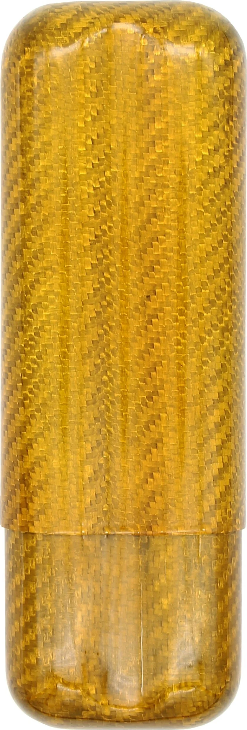 Etui na cygara wykonane z lekkiego jak piórko włókna węglowego, wykończone w promiennym złocie, zachwyca jako wyjątkowy przykład nowoczesnej elegancji. Oferuje miejsce na dwa cygara i jest specjalnie zaprojektowane, aby pomieścić cygara o maksymalnej średnicy 2,5 cm. Długość etui jest zmienna i wynosi od 15,5 cm do około 21 cm.